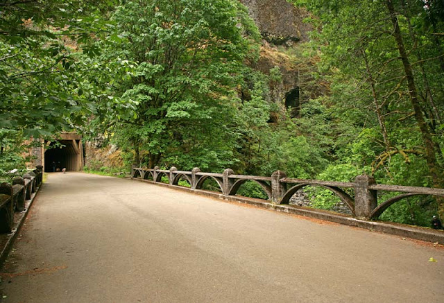 The road now actually bypasses this bridge, but it is here that the 1/2 mile walk to Oneonta Falls begins.